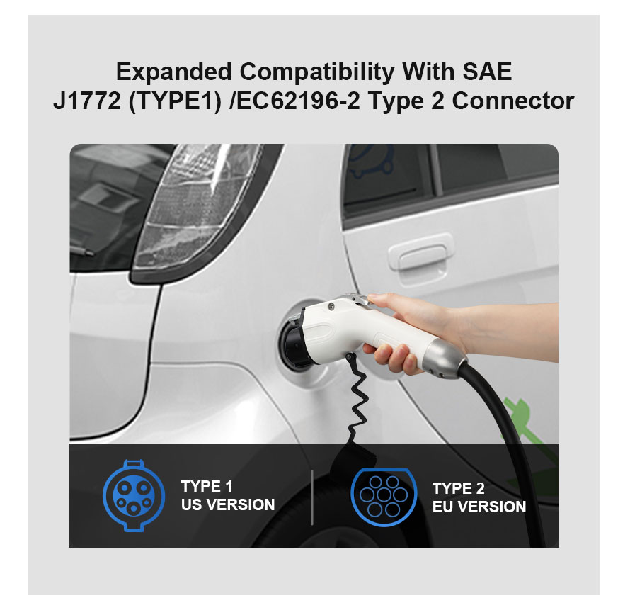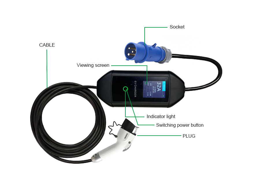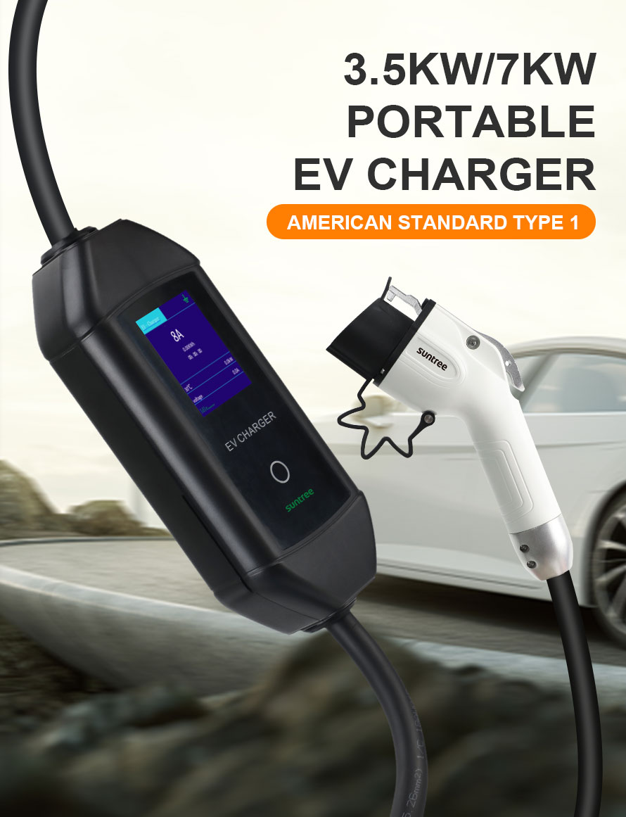 Chargeur portable pour véhicules électriques 16 A/3,5 kW 32 A/7 kW, connecteur 2,8 pouces, norme américaine type 1, certifié CE
