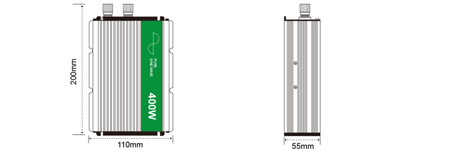 Lorsque la tension de la batterie atteint 10 V ± 0,5 V, le buzzer émet un bip rapide et la LED rouge s'allume, la sortie CA est coupée.