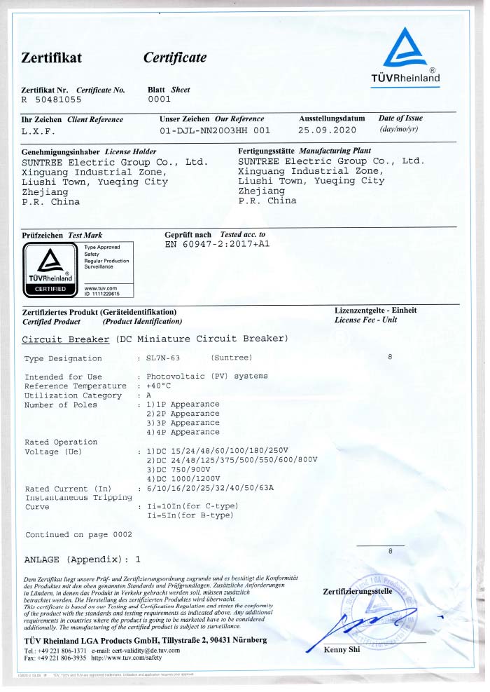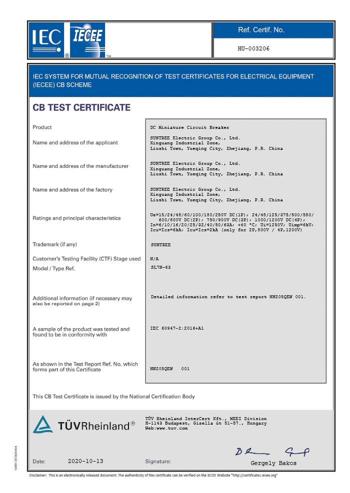 Disjoncteur miniature CC SL7N-63 003 2020-10-13 HU-003206