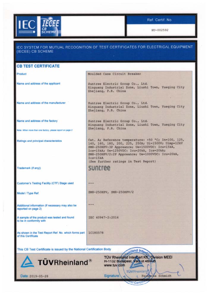 Disjoncteur 102 SM8-250HPV (disjoncteur à boîtier moulé) HU-002592