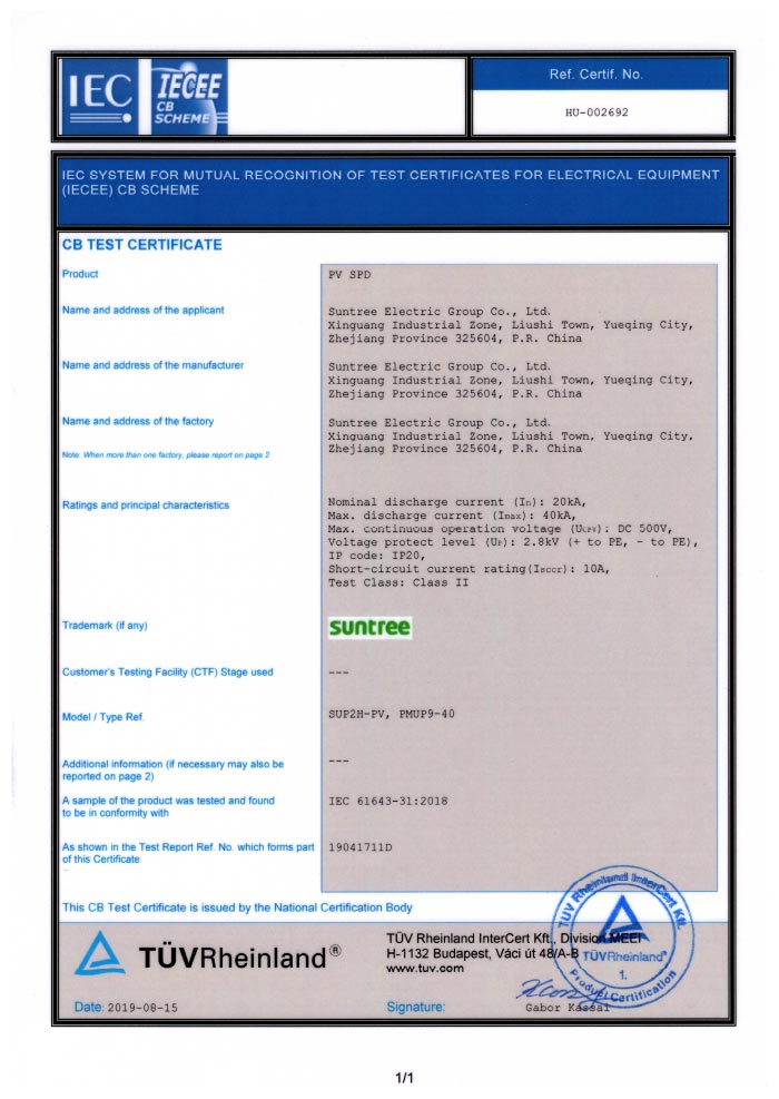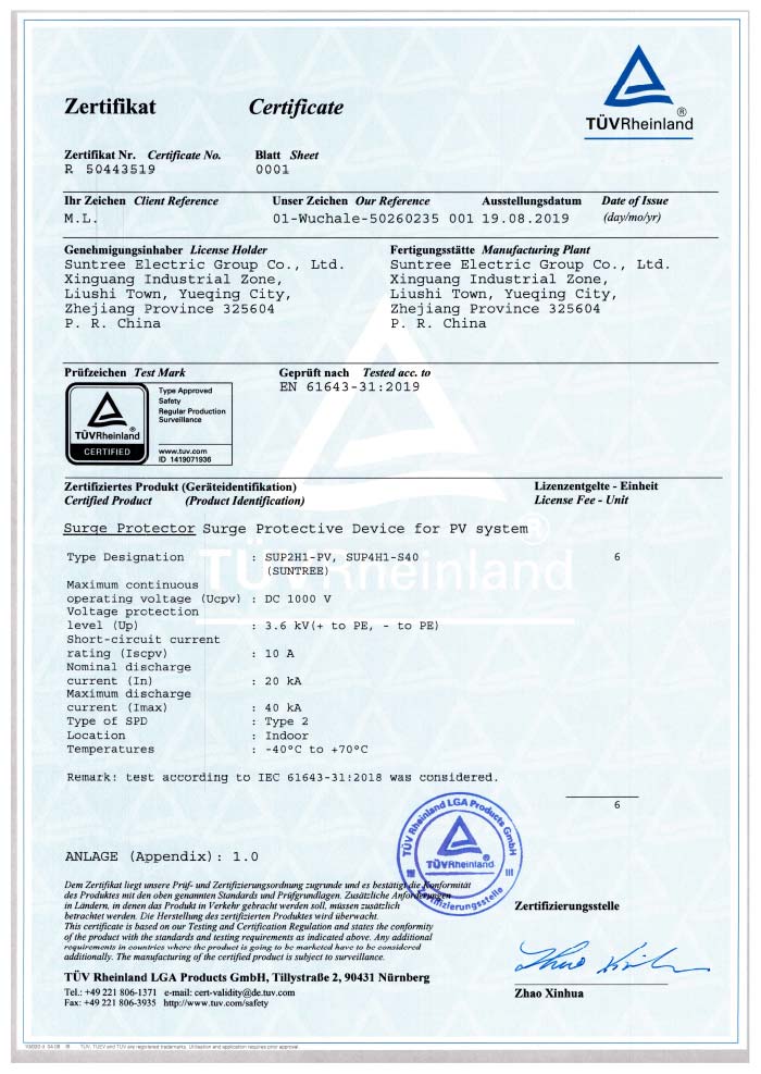 703 SUP2H1-PV, SUP4H1-S40 Parafoudre 2019-08-19 R50443519