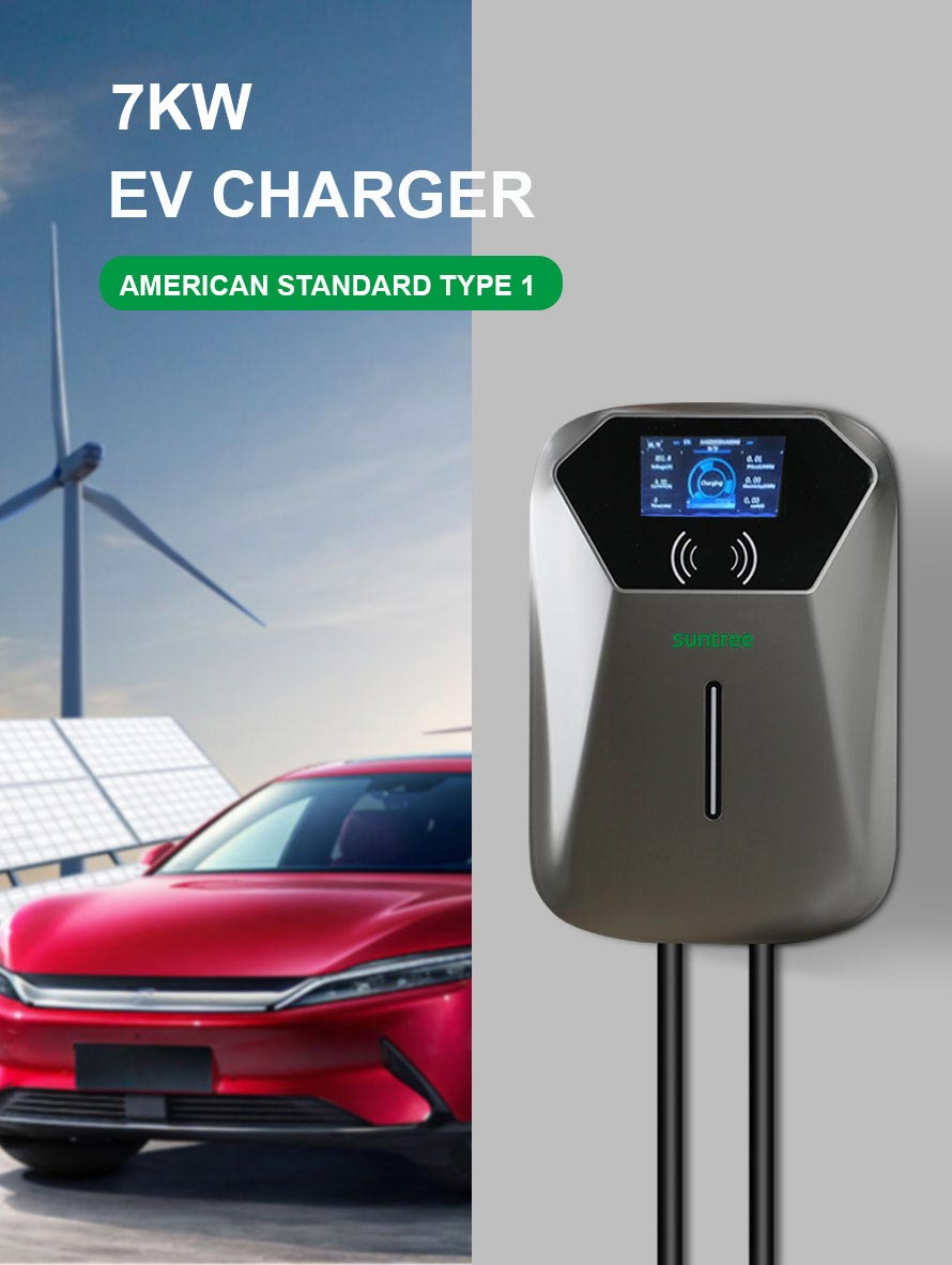 Chargeur pour véhicule électrique 7 kW/32 A, écran LCD 4,3 pouces, norme américaine de type 1